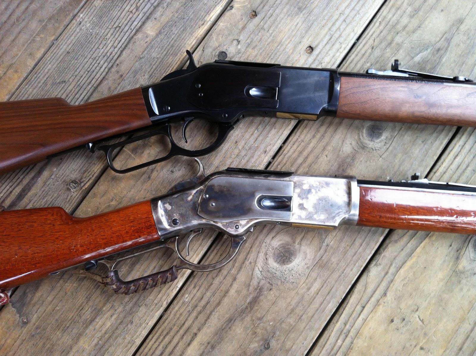 Here's the Winchester 73 on top, my match Uberti '73 on the bottom: